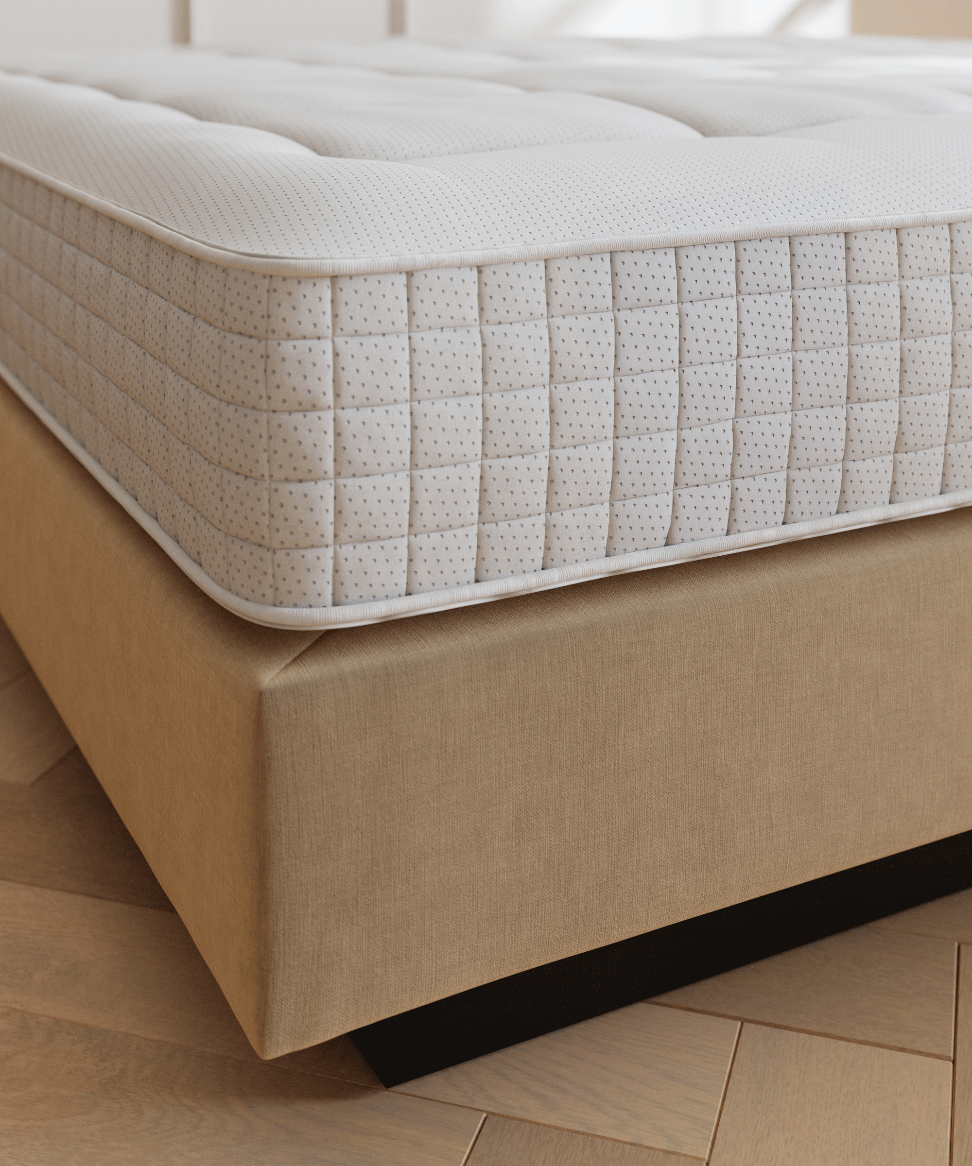 The box spring is crafted with a solid wooden frame, ensuring durable stability and outstanding quality.