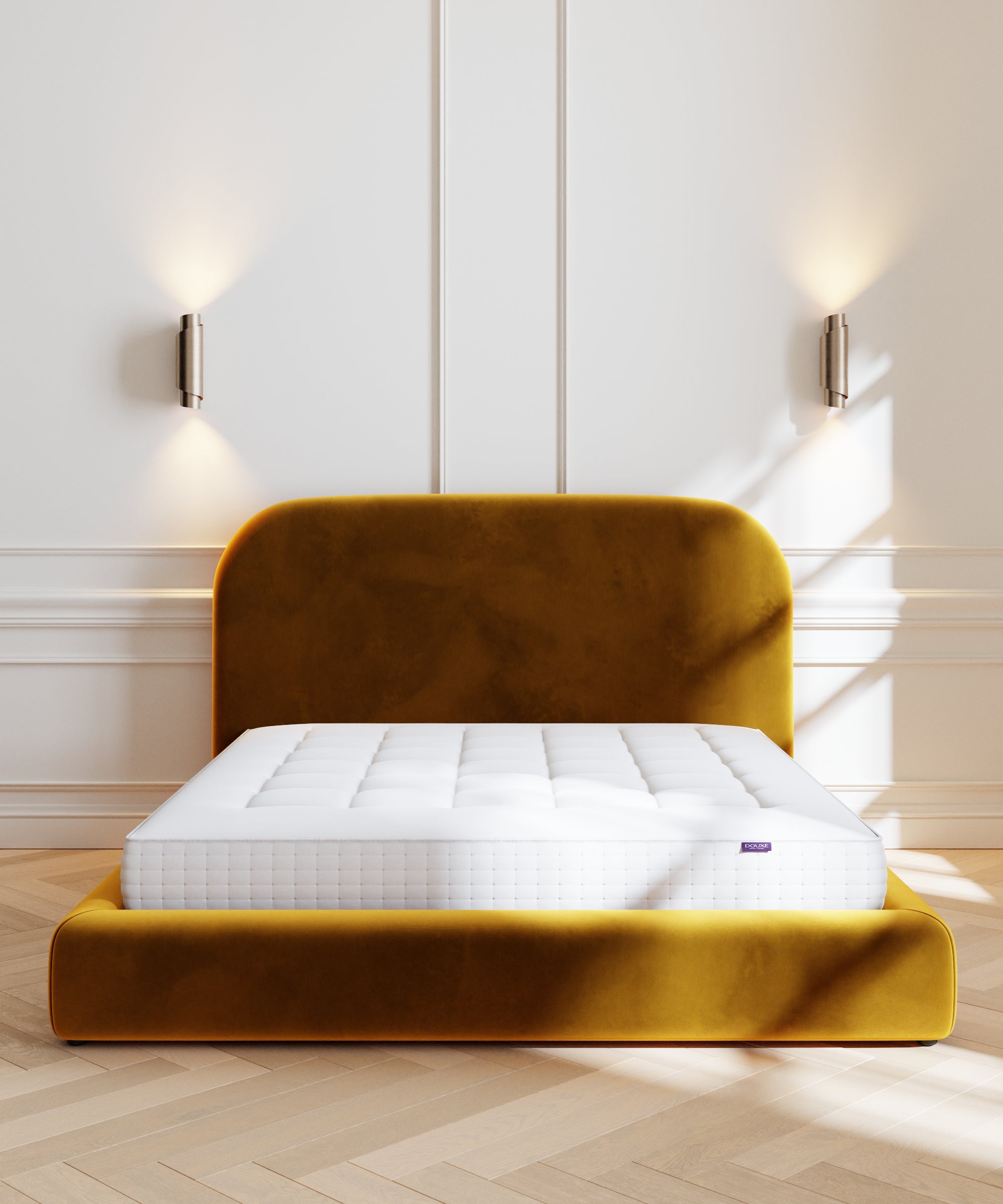 Carefully handcrafted in the Netherlands, it offers not only visual appeal but also lasting quality. The rounded contours and premium upholstery bring a sophisticated, hotel-like ambiance to any bedroom.