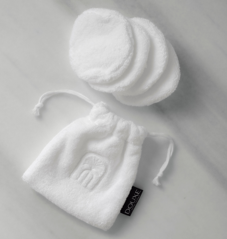 Experience the feeling of a wellness resort right in your own home with our ultra-soft makeup pads. Made from 100% cotton in Portugal and packaged in sets of four in an elegant DOUXE storage pouch, these pads offer a refined and sustainable way to thoroughly cleanse your skin.