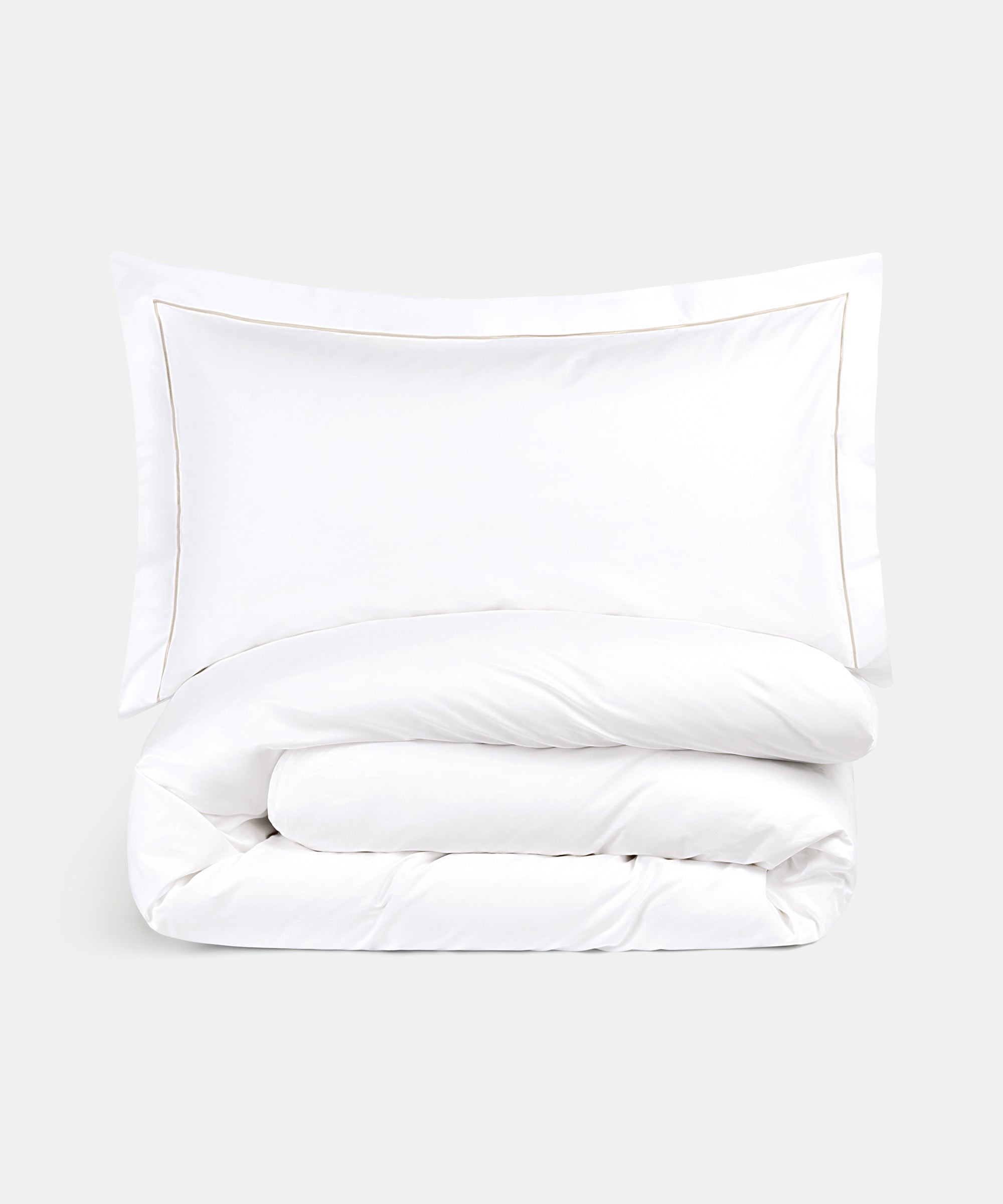 Duvet Cover Set + Fitted Sheet Egyptian Cotton Percale | Carmel White
