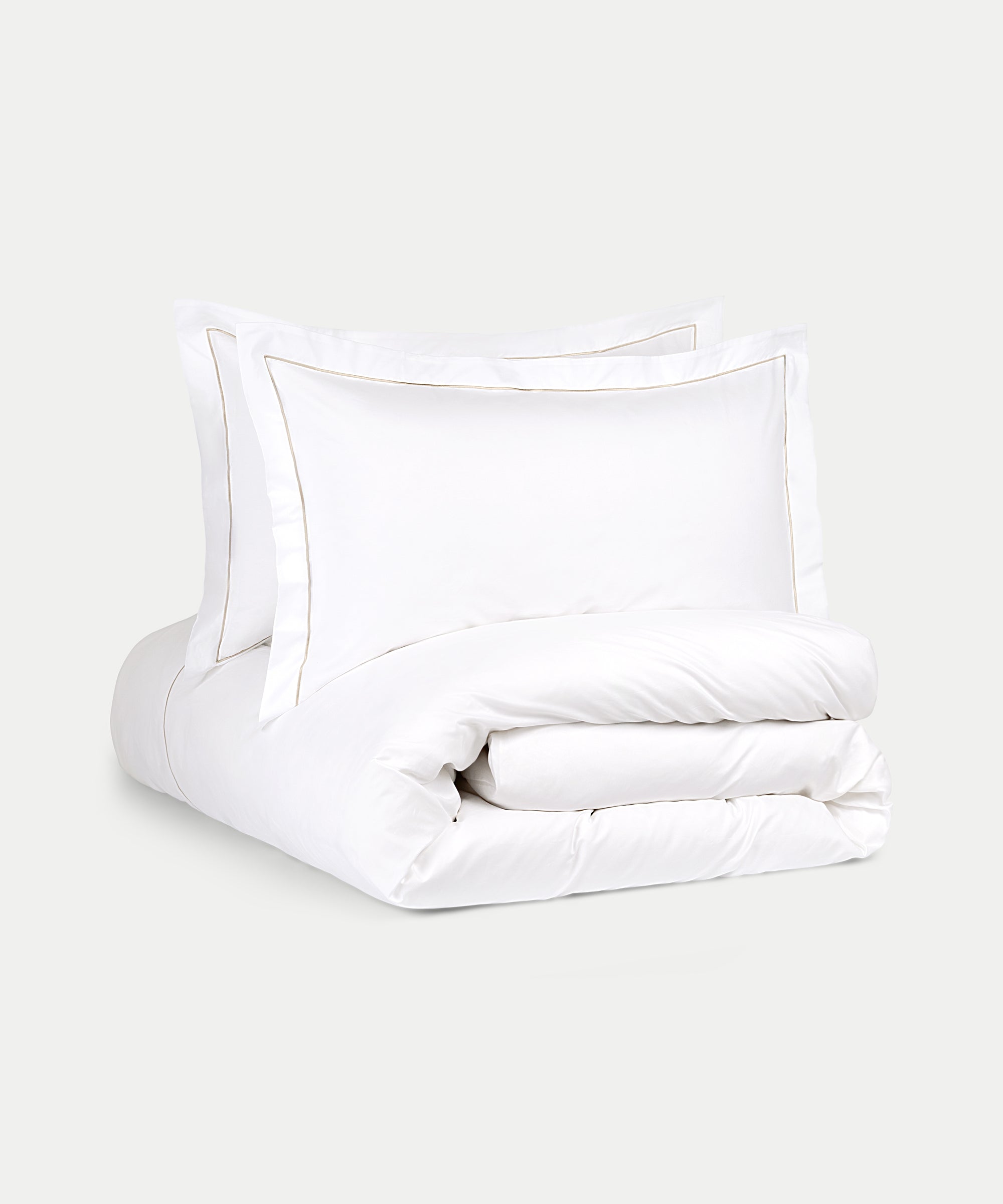 Color: Duvet Cover Set + Fitted Sheet Egyptian Cotton Percale | Carmel White