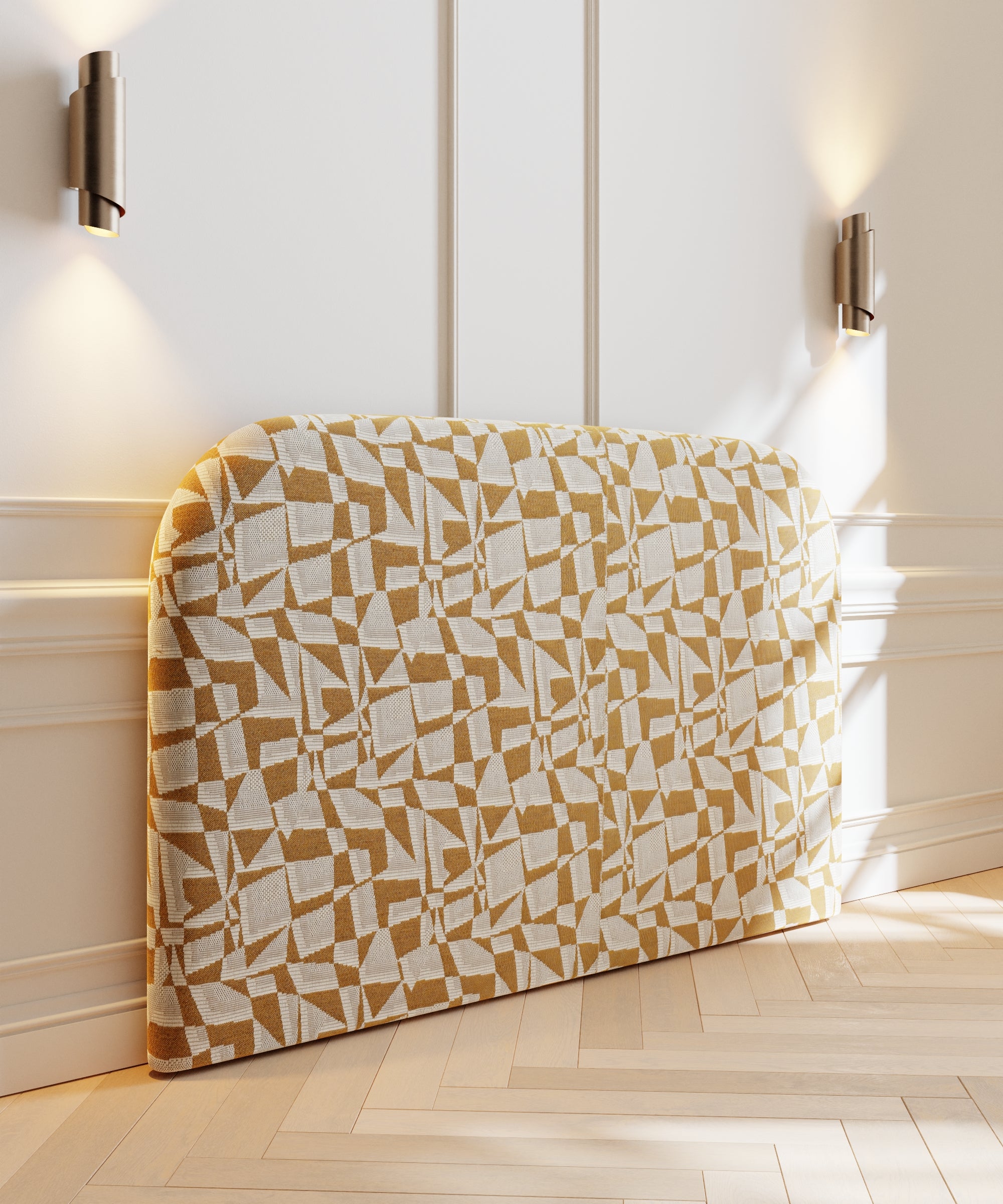 Carefully handcrafted in the Netherlands, this headboard offers not only aesthetic appeal but also long-lasting quality. The rounded shapes and premium upholstery give any bedroom a luxurious, hotel-like look and feel.