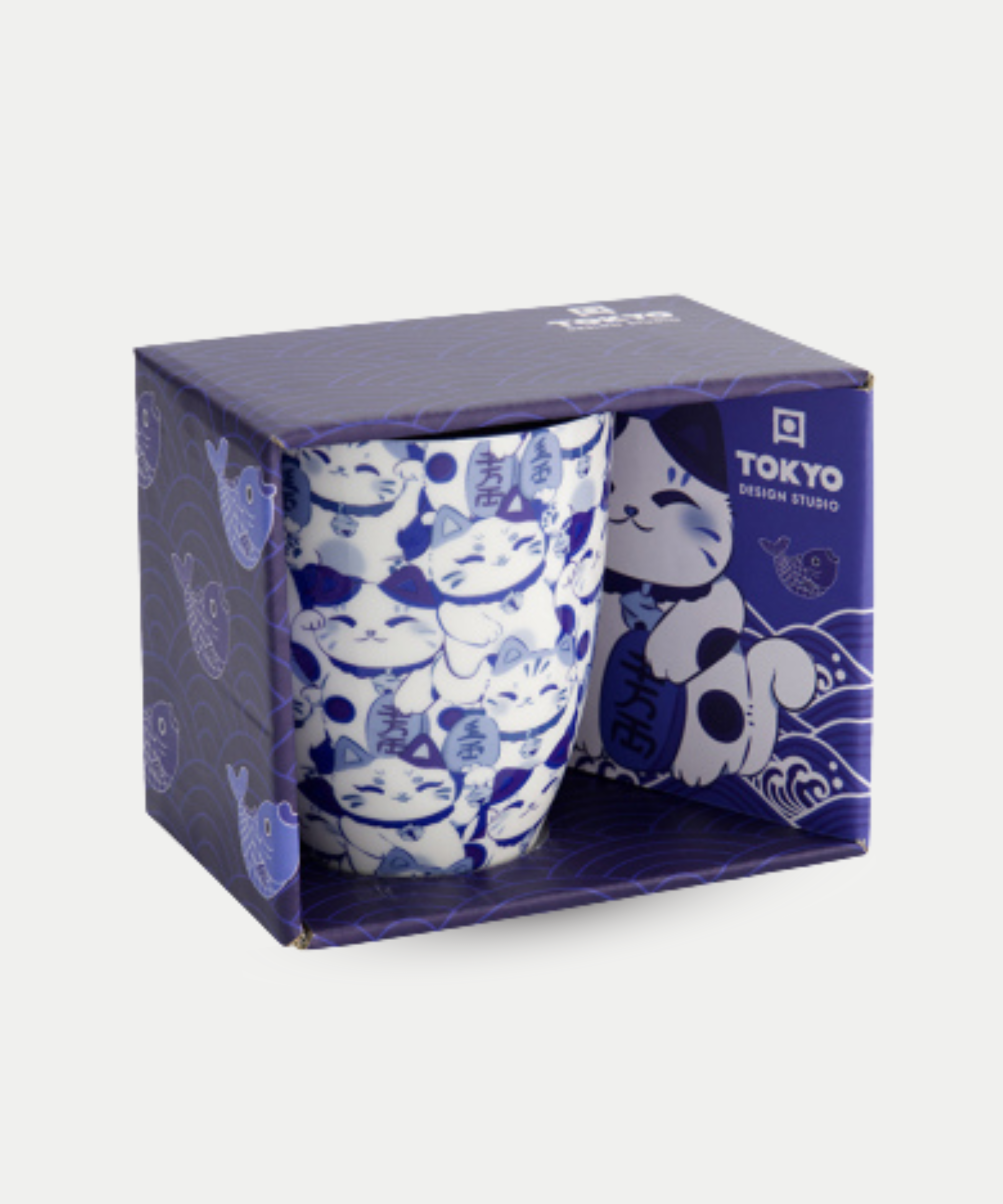 Tokyo Design Studio – Kawaii Blue Maneko Mug (with Gift Box)