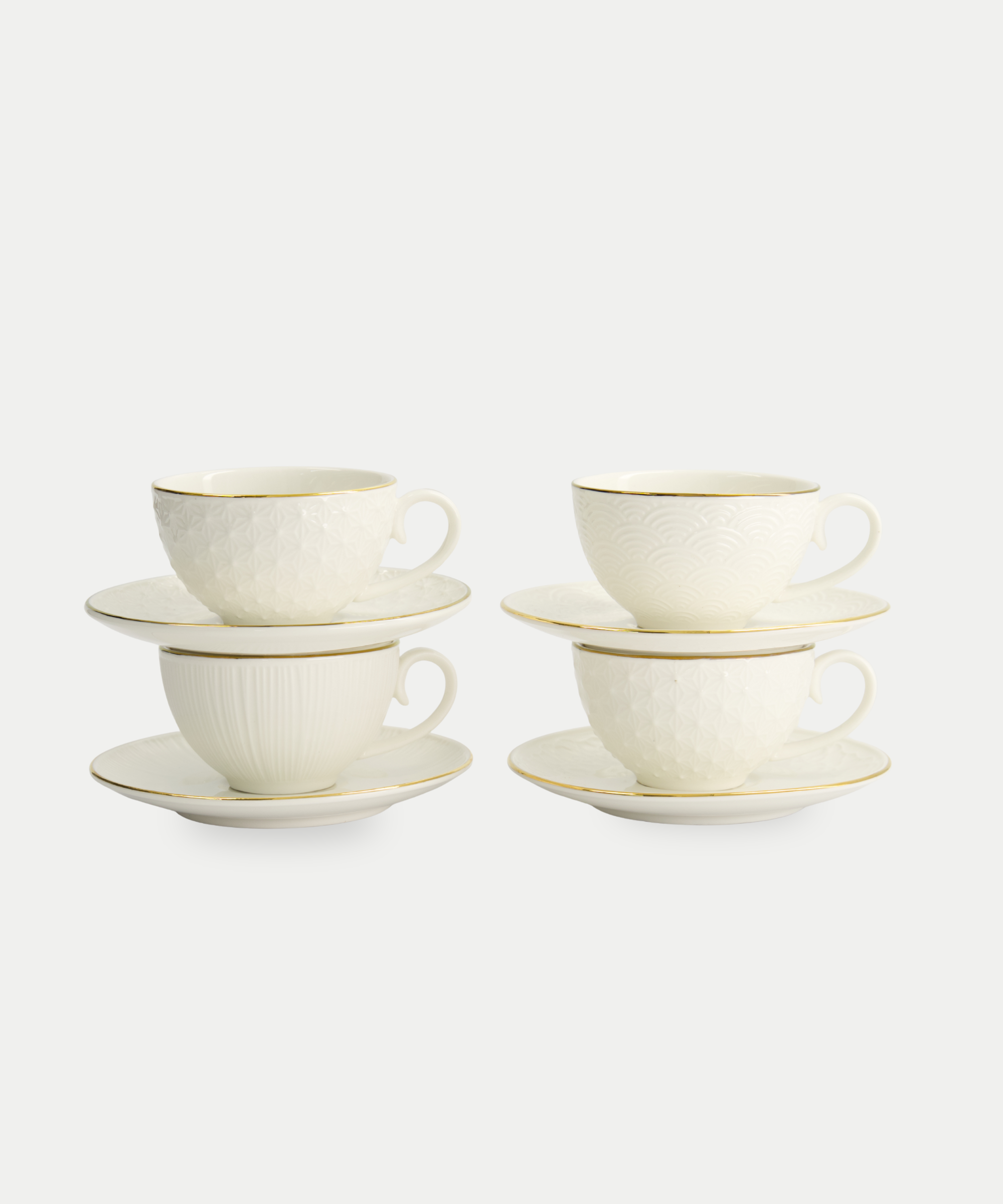 Luxurious 8-piece cup & saucer set made from high-quality porcelain